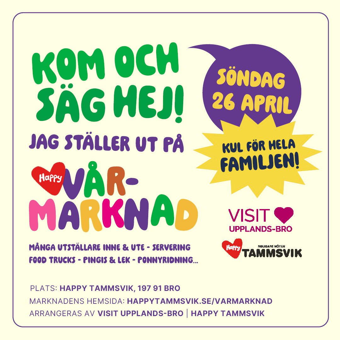 Den 1 maj 2025 hittar du mig på vårmarknaden på Happy Tammsvik i Upplands-Bro där jag står tillsammans med ett par kollegor och säljer böcker. Där finns också mycket annat intressant.